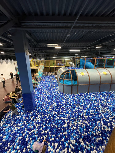 Когда зашла в это прекрасное место была в восторге, здесь очень много крутых мест где можно полазить,есть батуты,а также быстрые горки.На верхнем этаже есть кафе,где вкусно и разнообразно готовят,а также персонал